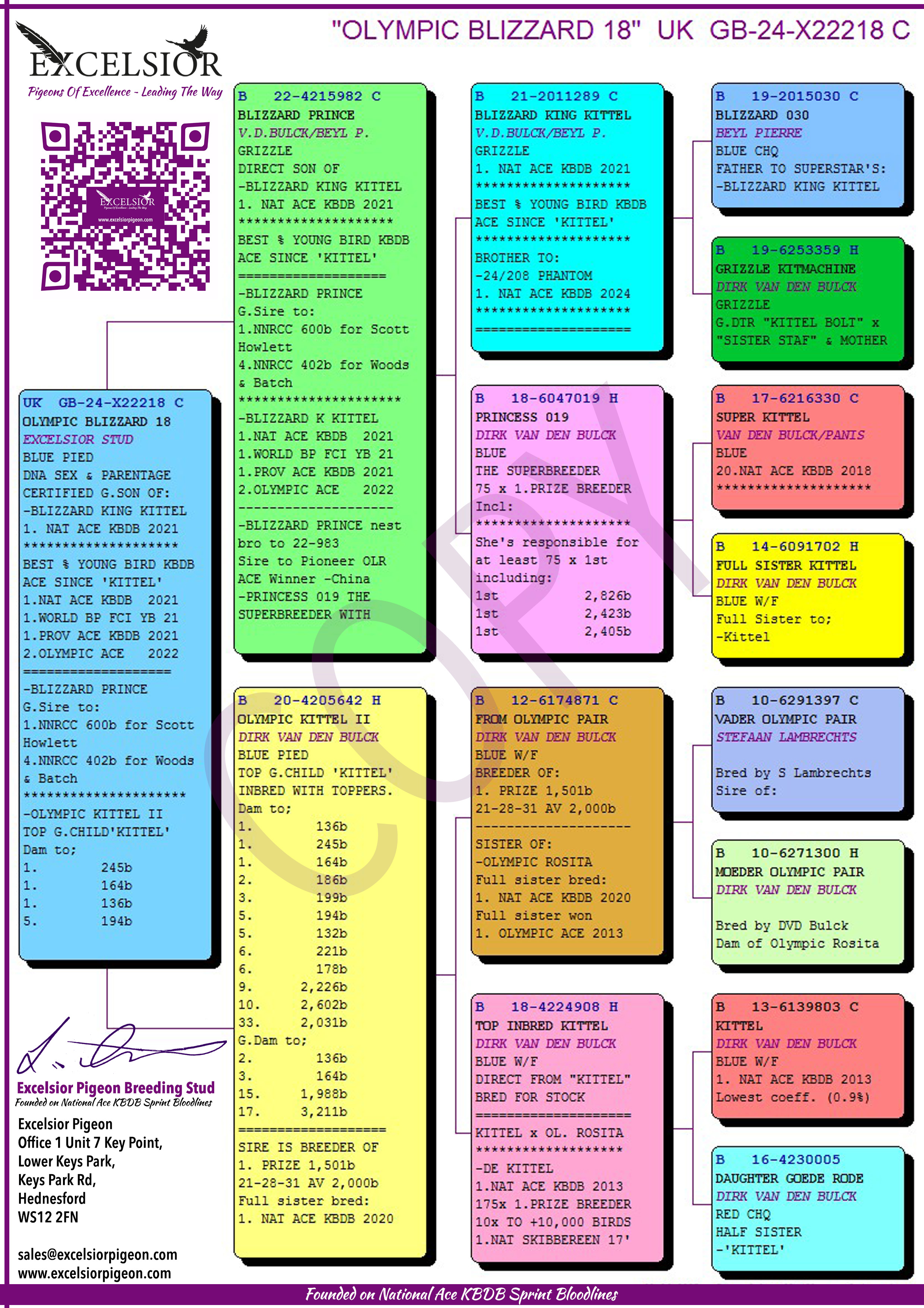 "BEST KITTEL II" has now bred 2nd KBDB and 3rd KBDB Sprint Champions of Belgium in 2022 (when mated to different hens too!)