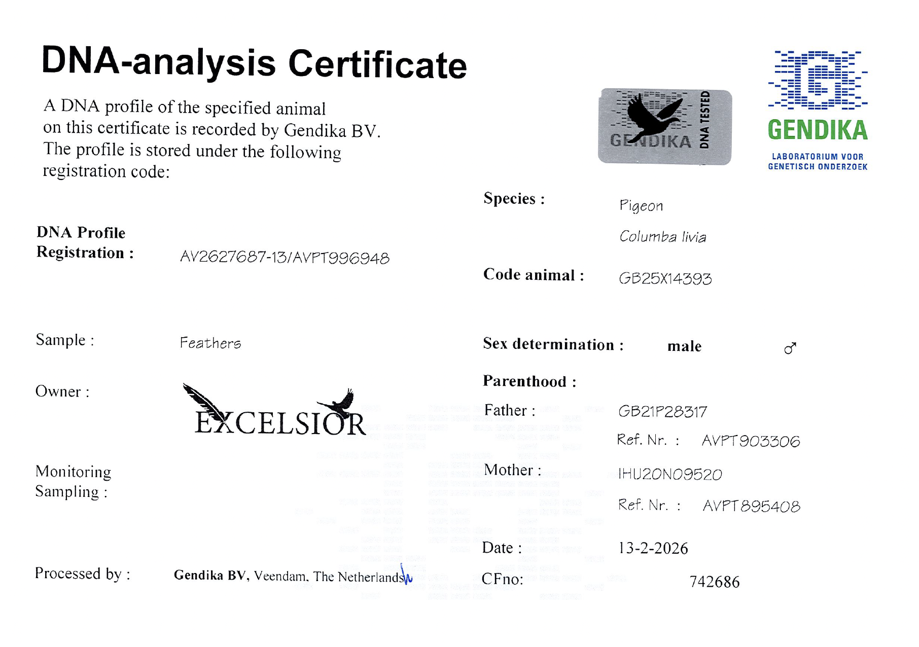 DNA Sex and Parentage are certified so you know for sure what you're investing in!