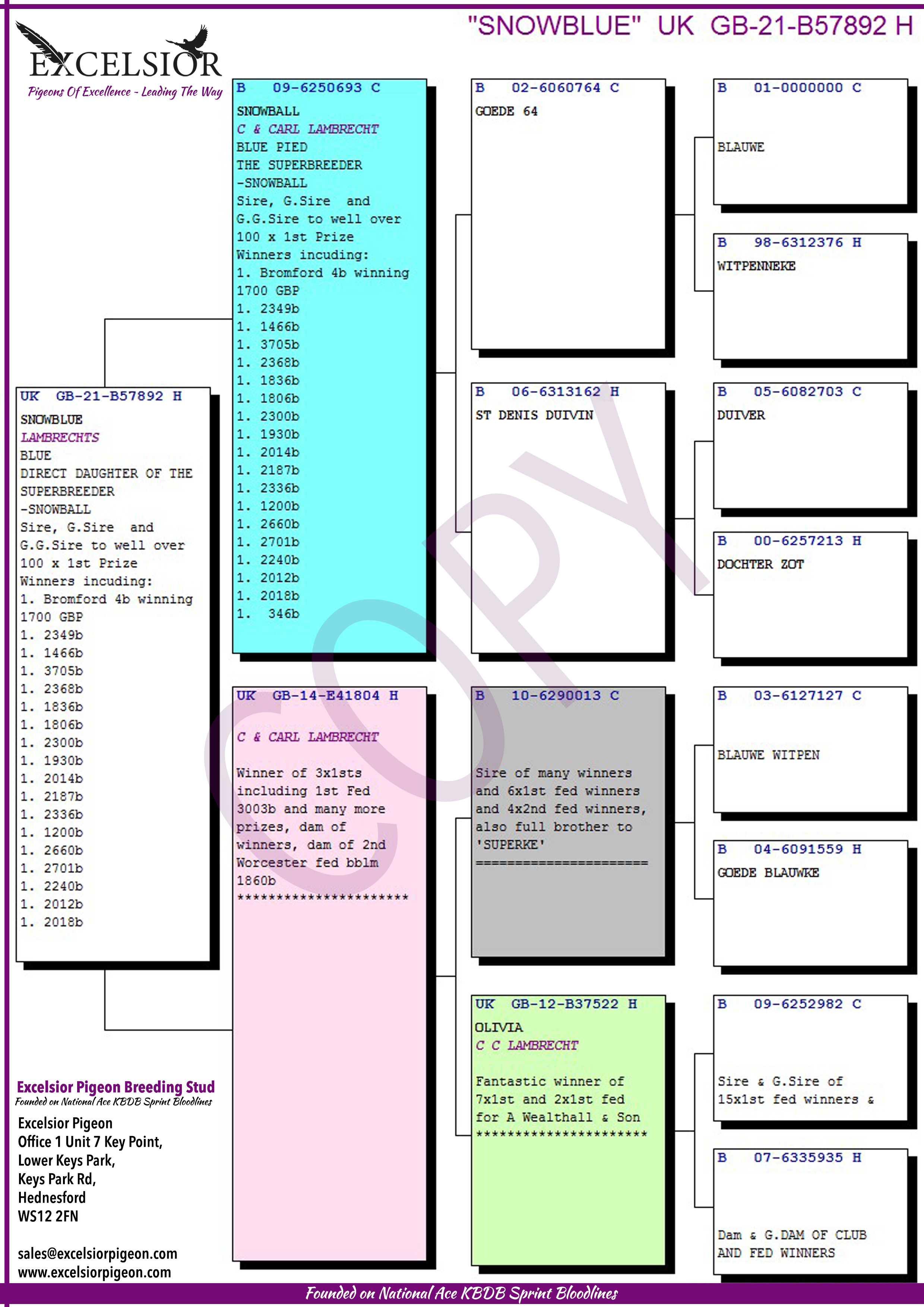 This "SNOWBALL" cock must be one of the most destructive Lambrechts producers to ever come into the UK - responsible for well over 100 x 1st now