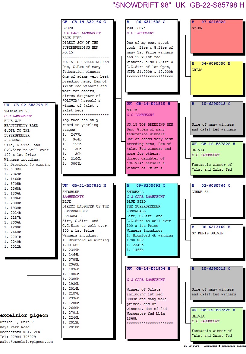 What a pigeon. Sensational breeder of winners. Sire, G.Sire and G.G.Sire of at least 100 x 1st prizewinners